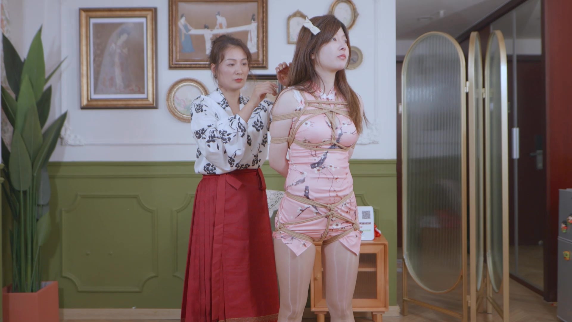【红鲤鱼】希希双机位捆绑堵嘴挠脚旗袍肉丝