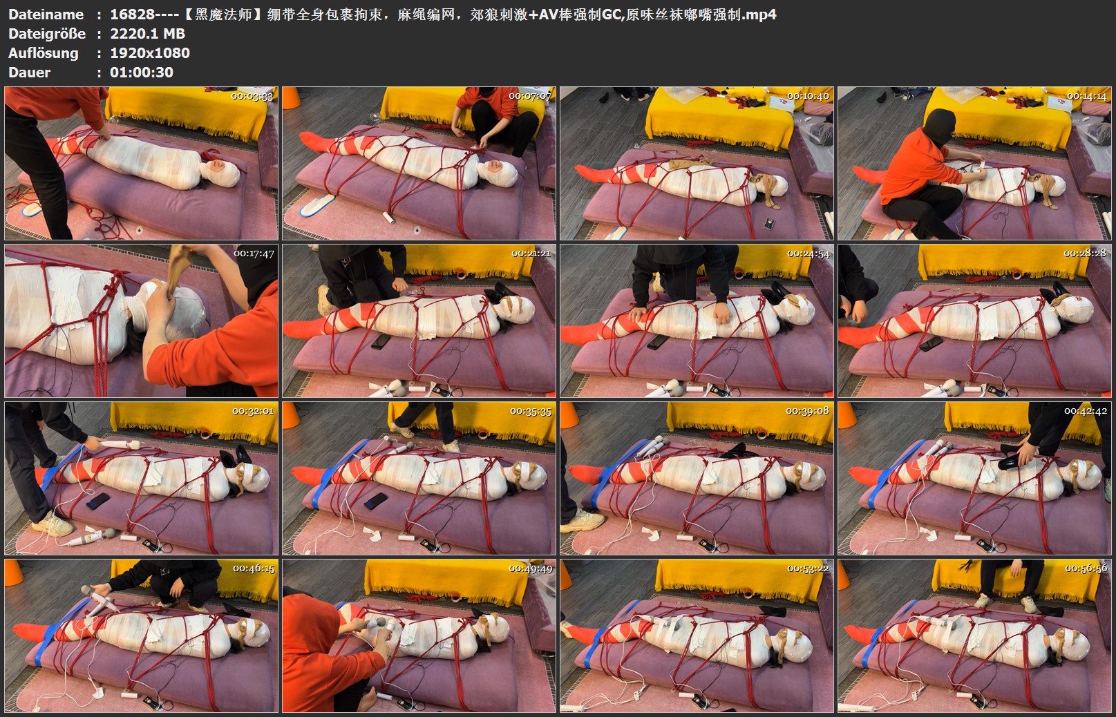 喜欢全包折磨的不要错过了。小m被绷带全身包裹 强制固定在垫子上,然后嘴里被塞入原味裤袜,被各种这么强制GC。电击贴片都安排上