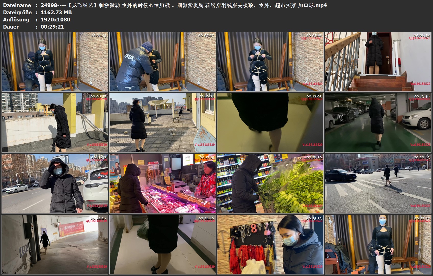 刺激激动 整个过程心惊胆战 花臀穿羽绒服去楼顶,室外,超市买菜,室内捆绑好了之后,穿上羽绒服,去楼顶,打开羽绒服,进行展示,下楼去地下车库显示,打开羽绒服进行展示,出门经过马路,去超市买菜,看到路人别样的一光,也不知道模特心里是怎么想的,路上的表情,经验了,最后坐电梯回工作室。整个过程刺激