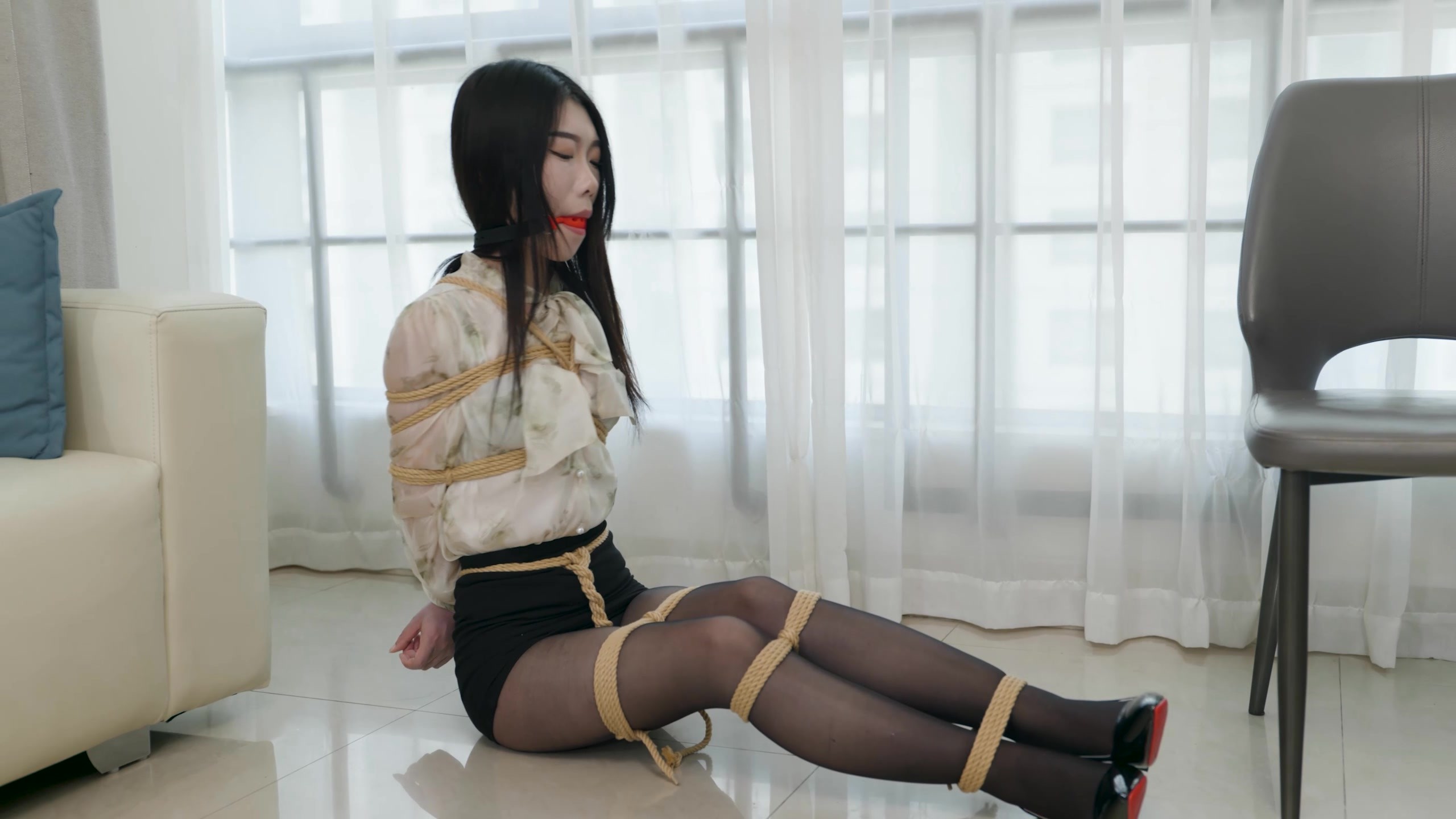 【缚心室】真空上阵,油光灰丝小美女直臂紧缚折磨,吊缚+驷马一